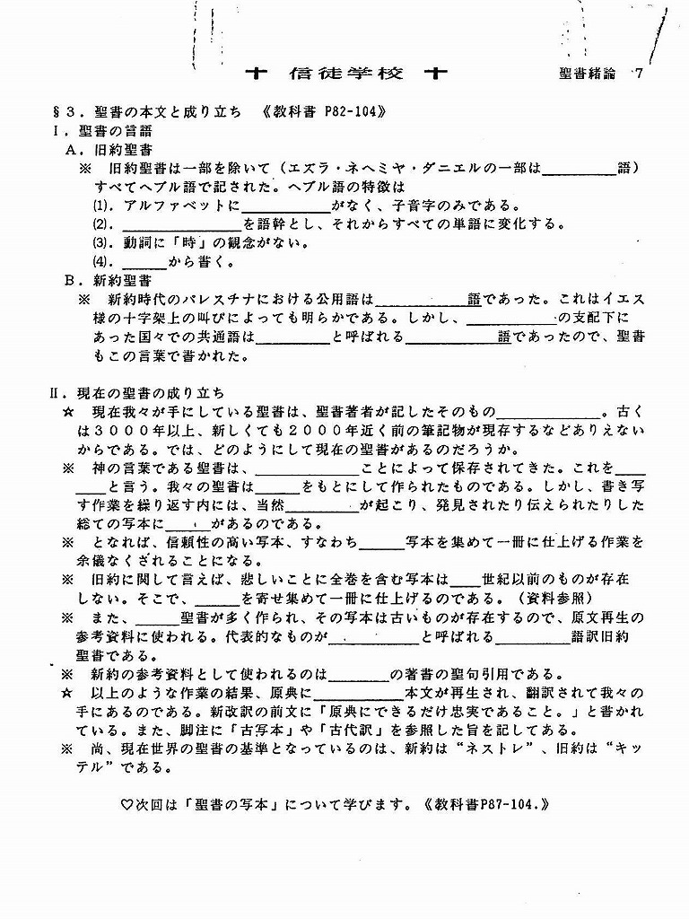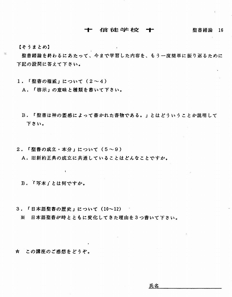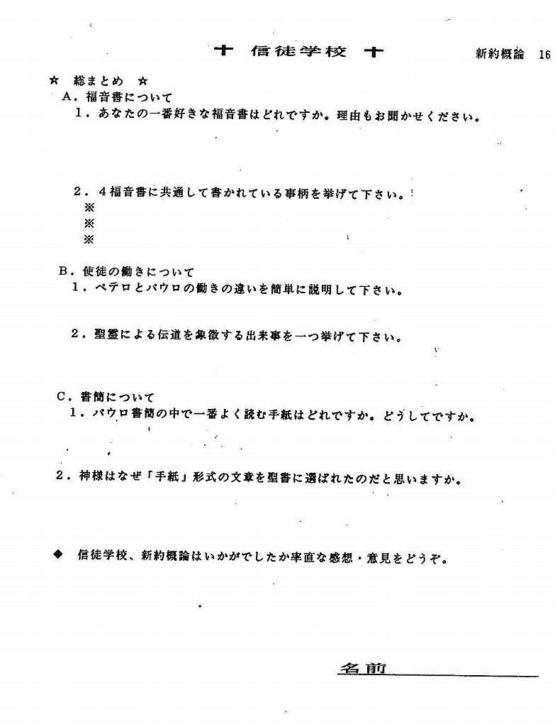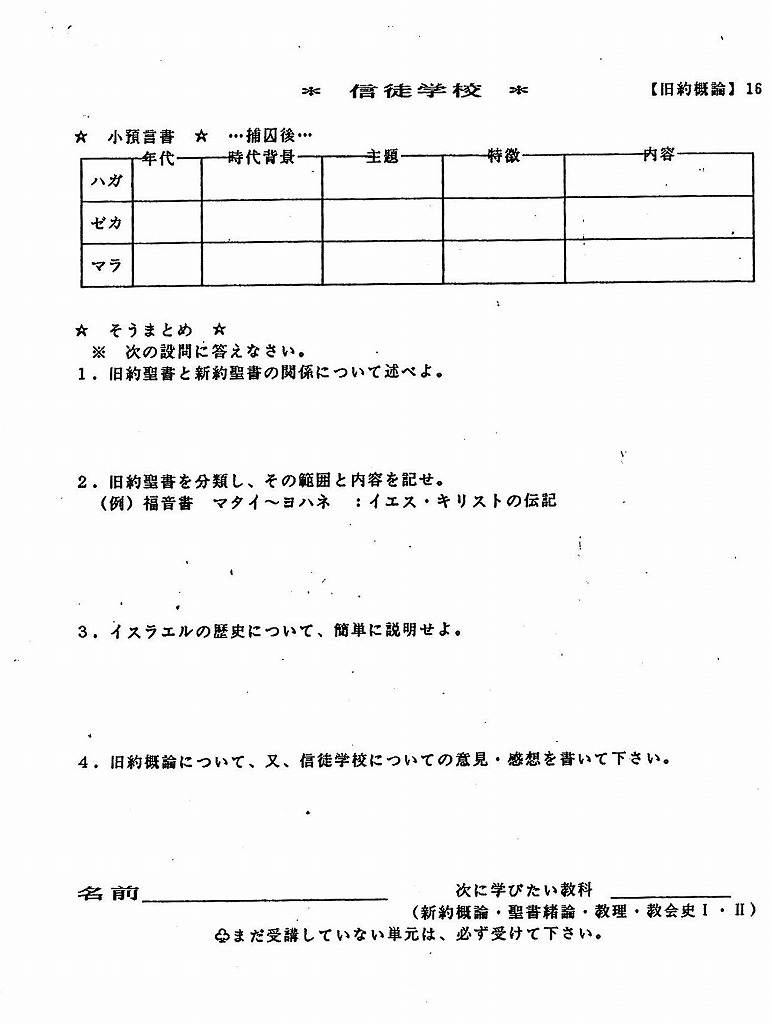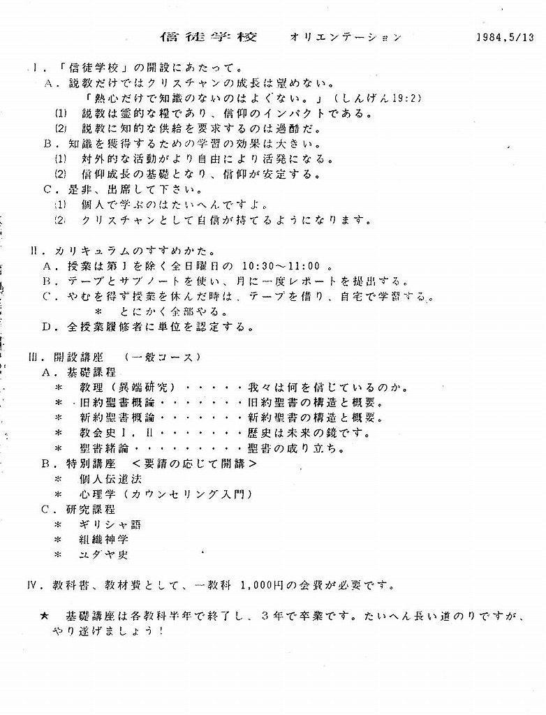 この「信徒学校」は、1984年5月から約3年間 行われた
