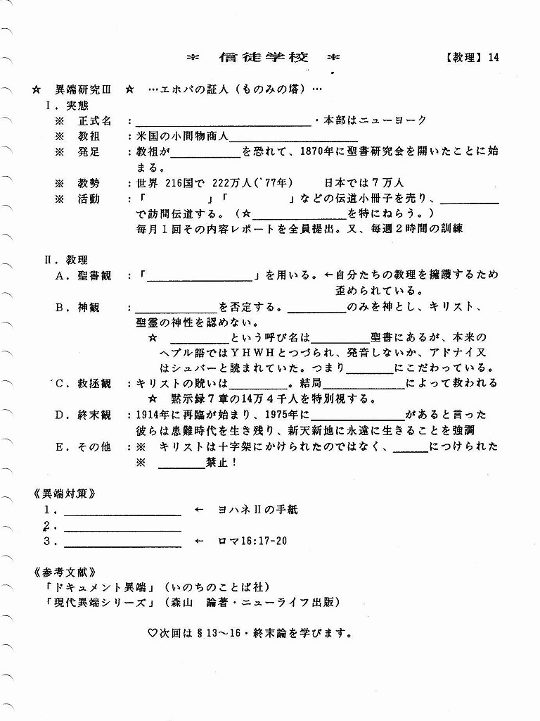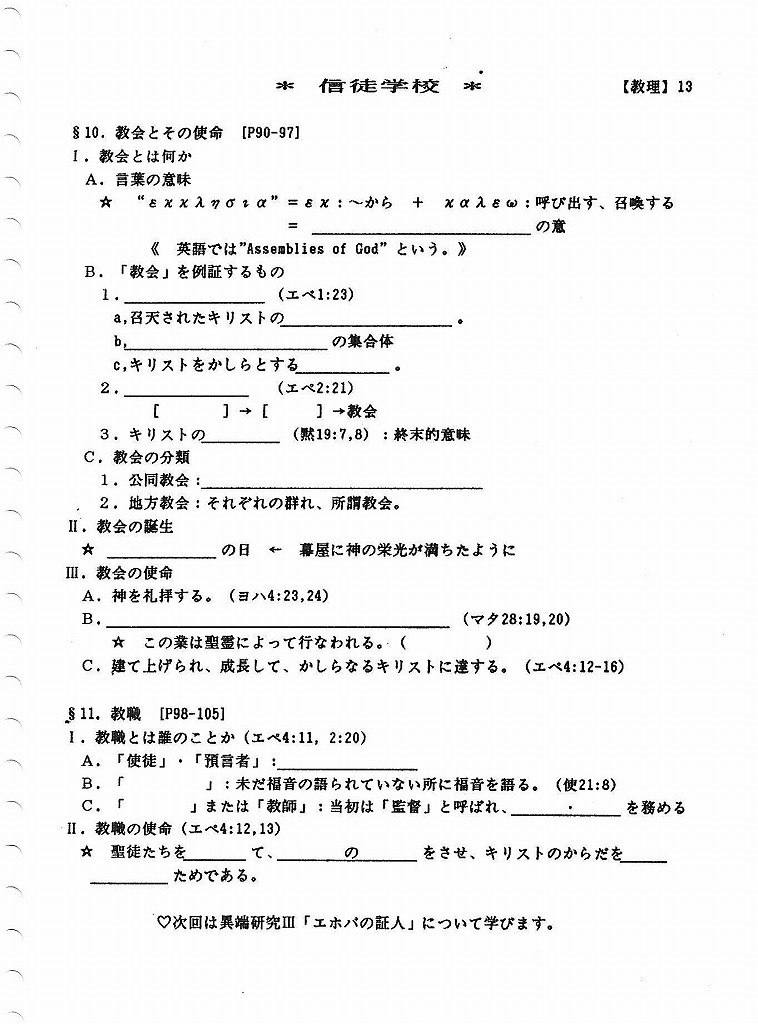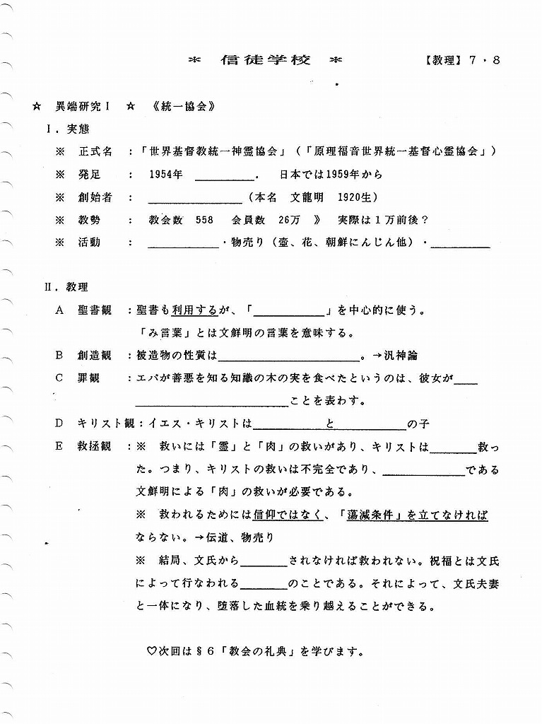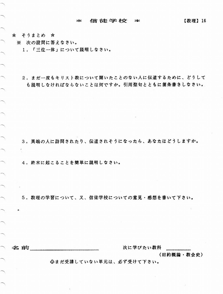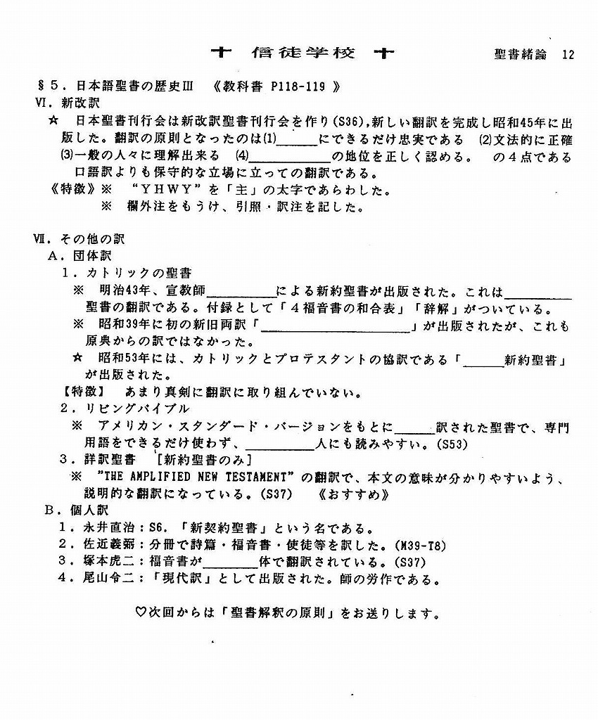 この「信徒学校」は、1984年5月から約3年間 行われた
