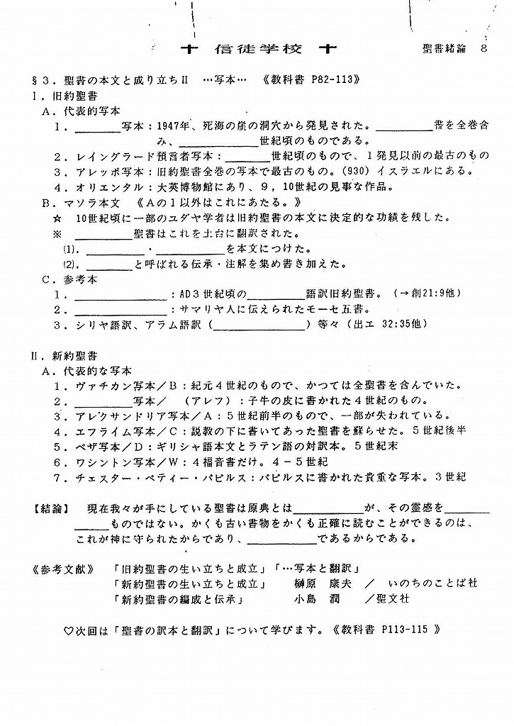 聖書の本文と成り立ちU・・・ 写本・・・ 資料1 資料2 |