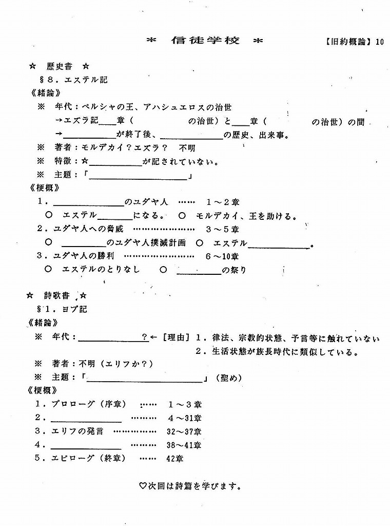 歴史書(エステル記)、詩歌書(ヨブ記) |
