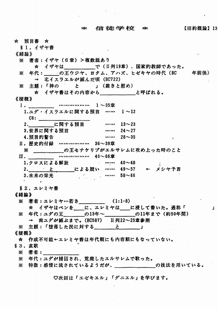 預言書(イザヤ書、エレミヤ書、哀歌) |