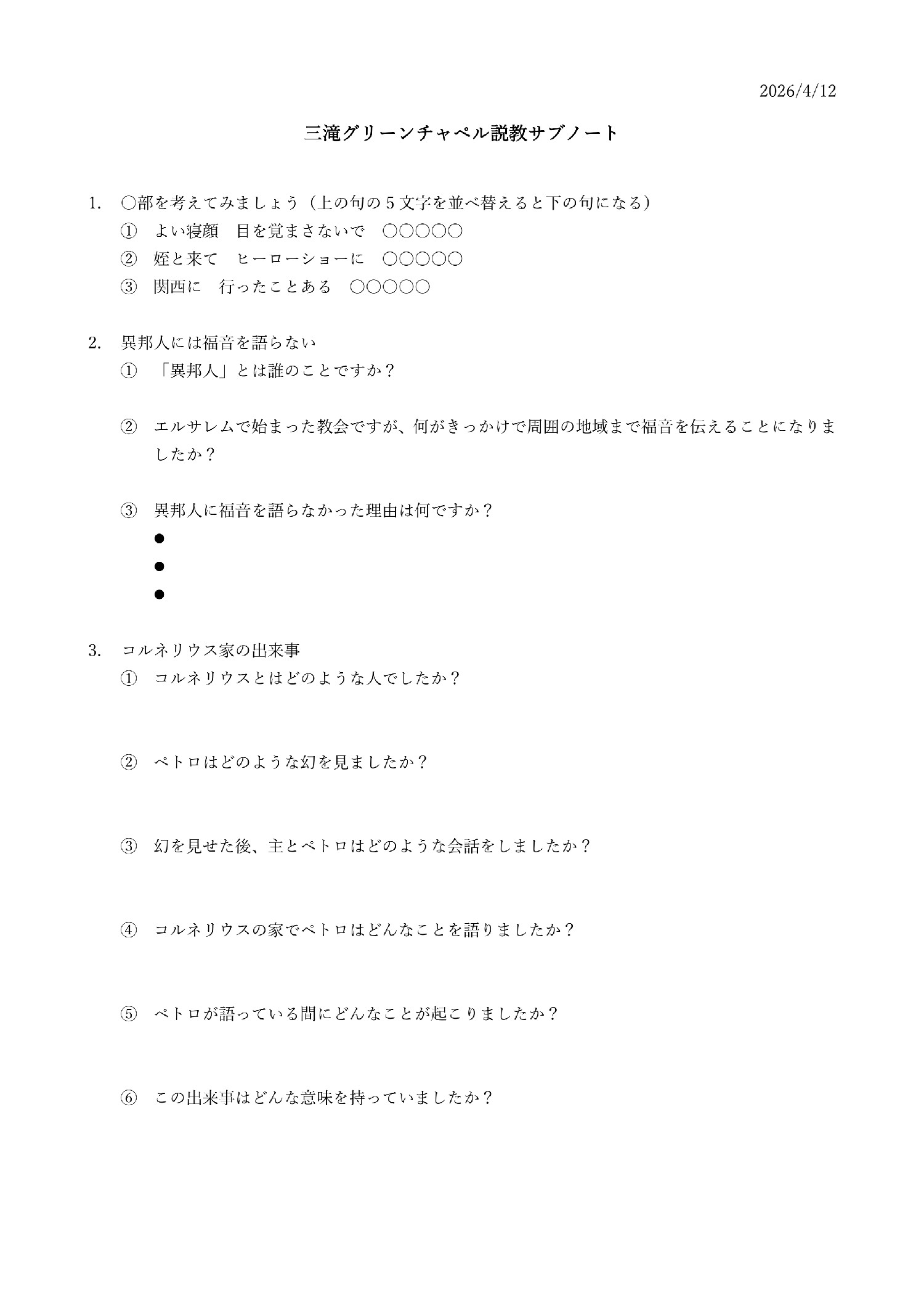 日本語礼拝