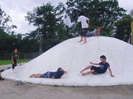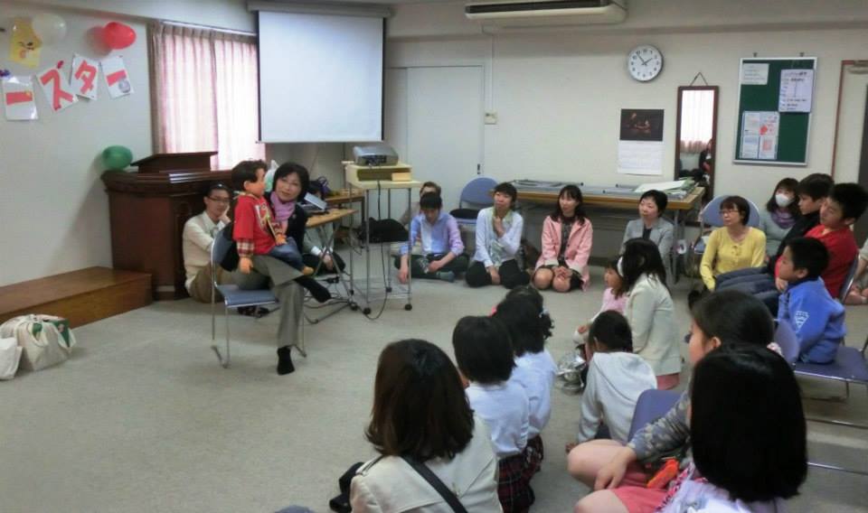 教会学校・幼稚科の「ワンデーキャンプ」がありました。ペイント遊びでは、手や足も使い大きな紙に力一杯絵を描きました。 |