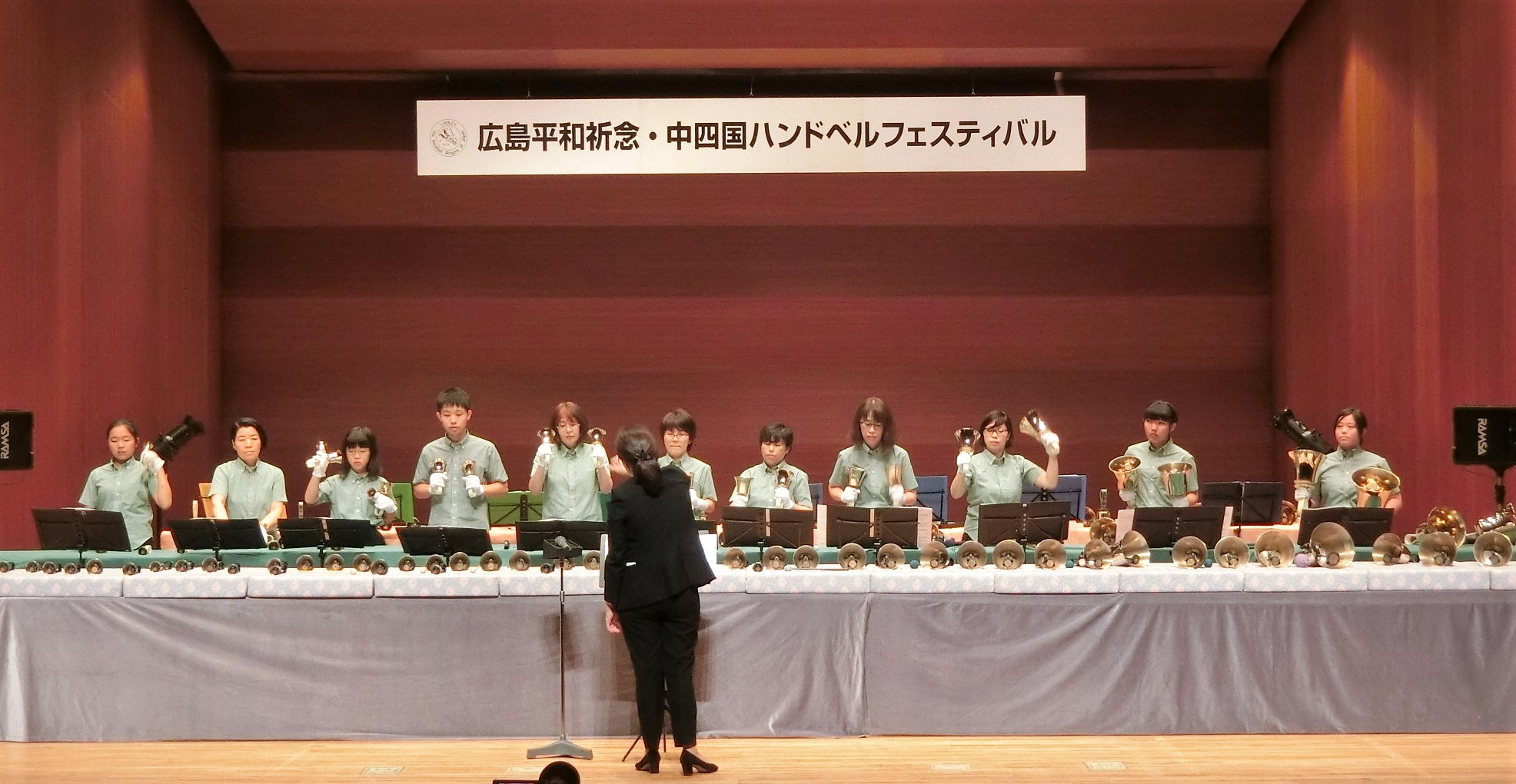 ベルを使用。広島では数少ないハンドベルクワイアとして、その華麗な奏法と澄み